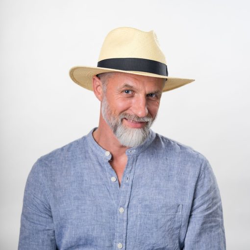 Mit seiner wasserabweisenden Eigenschaft und zusätzlichem UV-Schutz ist der handgefertigte Strohhut aus flexiblem Toquilla-Stroh ein idealer Begleiter für jedes Wetter. Sein stilvolles Ripsband verleiht ihm eine besondere Note, die sowohl in Sachen Tragekomfort als auch Optik Bestnoten verdient. Als Fedora-Modell ist er ein Klassiker unter den Hüten – perfekt für Weltenbummler oder solche, die es noch werden möchten. Mit seinem hohen UV-Schutz nach Standard 801 (Hohenstein) bietet er optimalen Schutz vor Sonnenstrahlen.