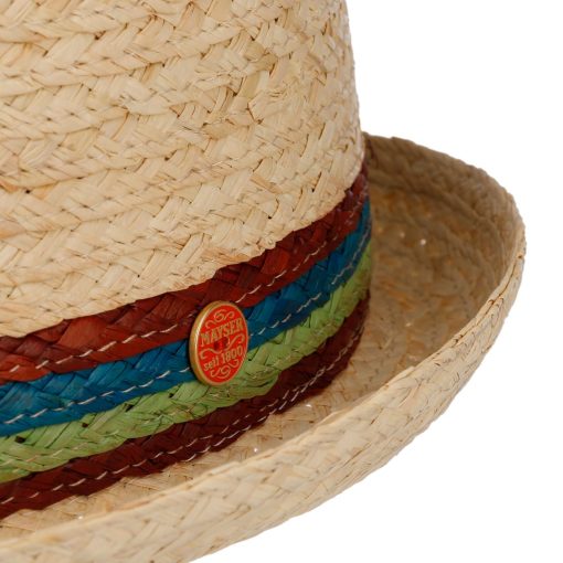 Die handgefertigte Kopfbedeckung aus Raffiastroh vermittelt mit ihrem unifarbenen Design und den farblich gestreiften Elementen rund um die Krone ein Gefühl von karibischem Südseeflair. Sie bietet dem Träger einen sommerleichten, sorglosen Komfort. Ob zu einem Hawaiihemd oder Sommerkleid getragen, oder als Begleiter für abendliche Clubbesuche – sie findet immer Anklang. Hergestellt in der Slowakei, ist dieses Stück eine echte Bereicherung jeder Garderobe.