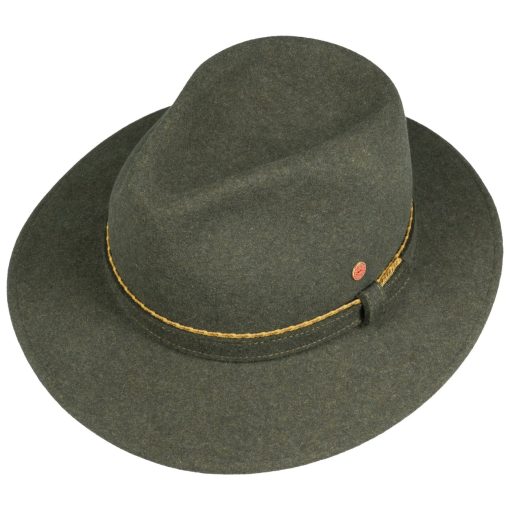 Ein Hauch von Gold blitzt am Hutband dieses Outdoorhutes auf und sorgt für eine elegante Note. Der Trekkinghut zeigt sich dabei nicht nur stilvoll, sondern auch praktisch: Dank seiner Fertigung aus reiner Schurwolle ist er wasserabweisend, knautschbar sowie weich und bietet zuverlässigen UV-Schutz. So vereint der hochwertige Herrenhut Stil mit Funktion in höchster Qualität. Ein Ripsfutterband und ein seitliches Metallemblem runden das Design ab.
