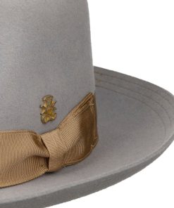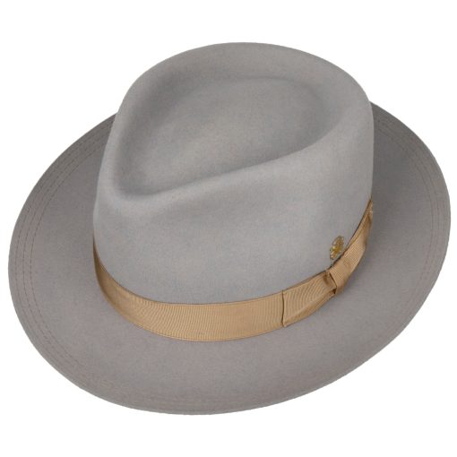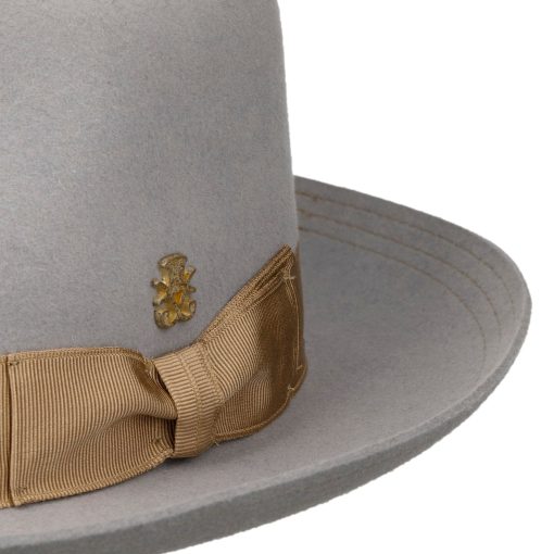 Mit diesem Fedora aus edlem Haarfilz wird Eleganz neu definiert. Das Design besticht durch eine klassische Form, veredelt mit einem stilvollen Ripsband und einer traditionellen Schleife. Der äußerst angenehme Tragekomfort ist ein weiterer Pluspunkt dieses Hutes, der seine Qualität unterstreicht. Ein dezentes Markenbadge rundet das Gesamtbild ab und bekräftigt die Herkunft aus europäischer Produktion.