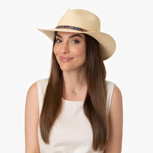 Mit seinem aus 100% Panamastroh gefertigten Design ist der Cowboy- und Westernhut ein idealer Begleiter für alle, die einen entspannten Lebensstil pflegen. Sein charakteristisches Aussehen erhält er durch das Ledergarniturband, welches eine unvergleichliche Leichtigkeit vermittelt. Neben seiner stilvollen Ästhetik bietet der Hut auch praktische Vorteile: Er hat einen hohen UV-Schutz und macht somit Spaziergänge in der Sonne zum Vergnügen. Sogar vor einem plötzlichen Regenschauer schützt er dank seiner wasserabweisenden Eigenschaften zuverlässig. Zudem sticht seine Herstellung innerhalb der EU heraus.