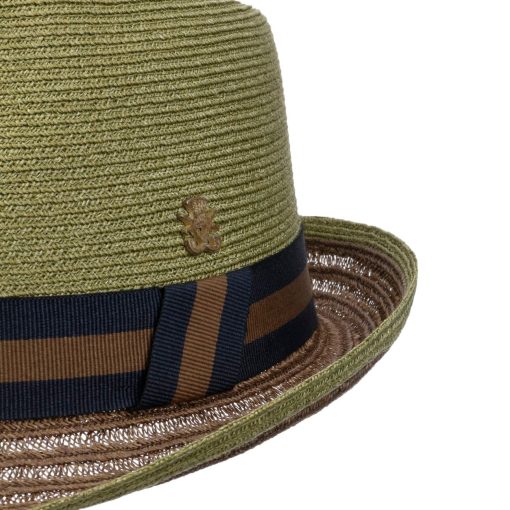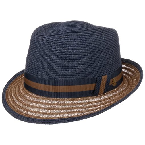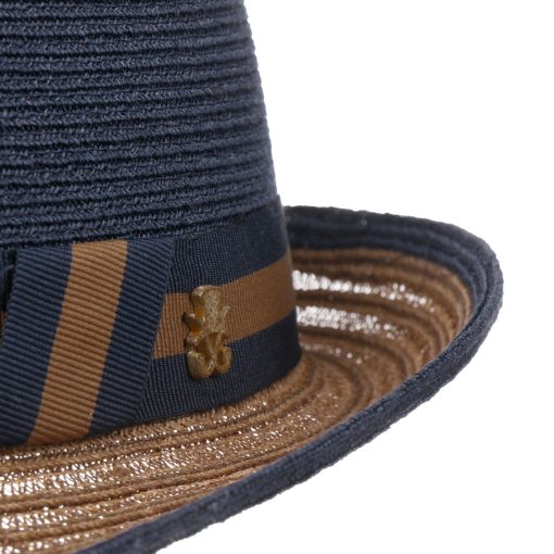 Ein Trilby-Hut, der durch sein beeindruckendes Bortendesign auffällt. Ein Highlight ist die traditionelle Fertigungsmethode, die seit 1833 angewendet wird. Hierbei entsteht der Hut aus einer endlosen Borte, welche auf historischen Maschinen vernäht wird. Sein erlesener Stil mit einem Hauch von Klassik betont den hohen Wert dieses handgefertigten Fedoras. Der Hut besteht aus Hanfstroh und Baumwolle und wurde in der EU produziert.