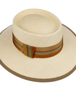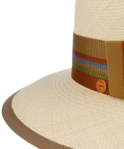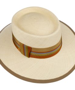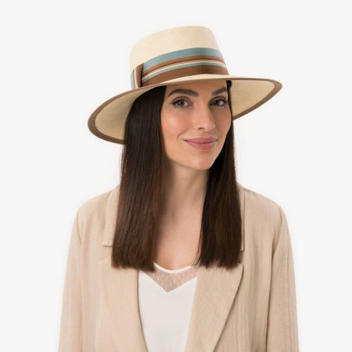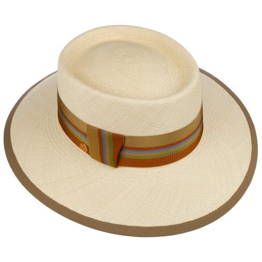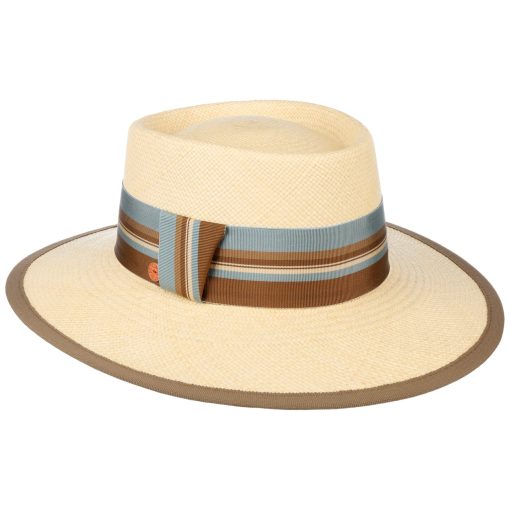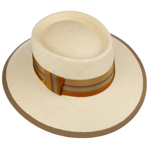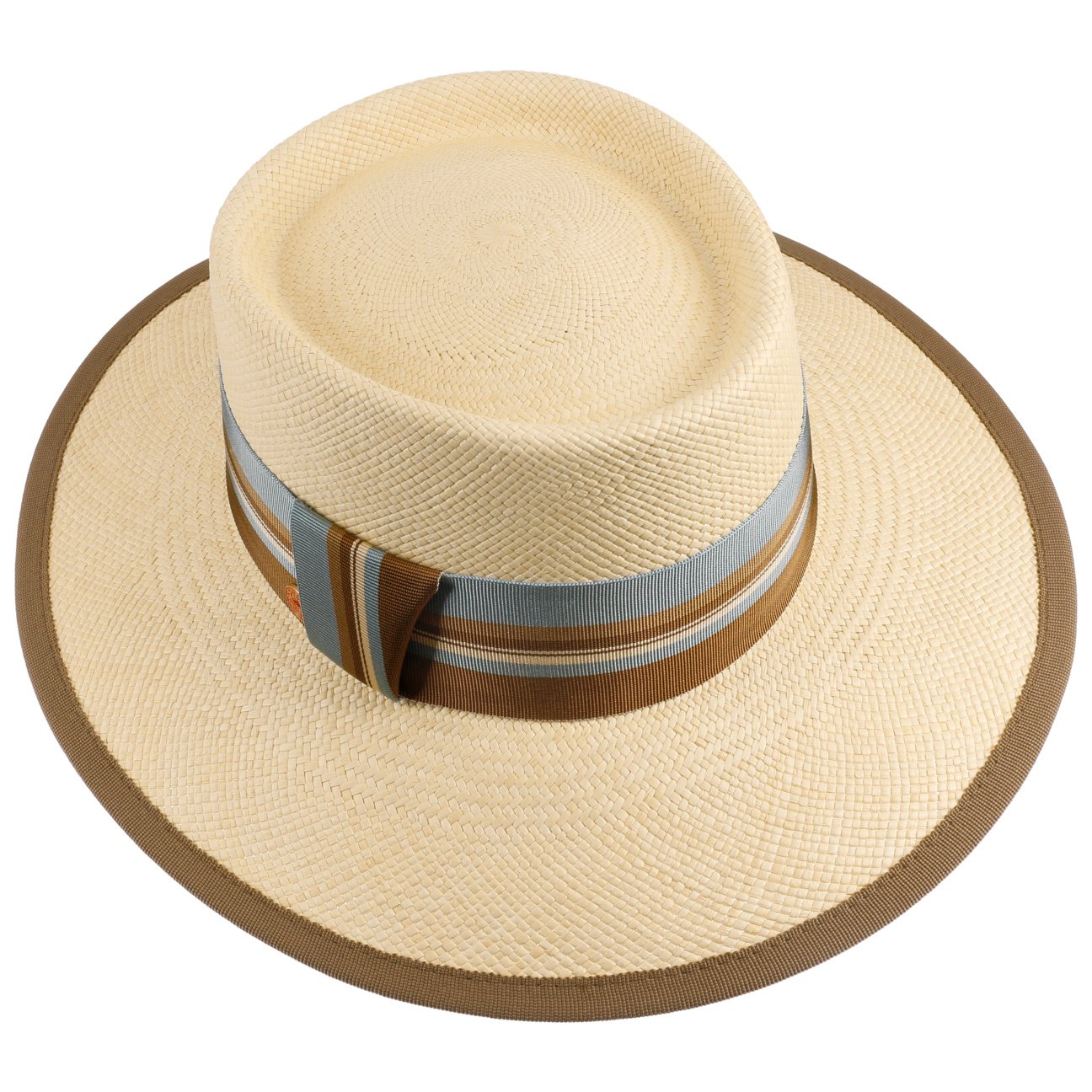 Ein Highlight des Sommers ist ganz klar der handgefertigte Flapper aus Panamastroh. Geflochten von erfahrenen Handwerkern in Ecuador, besticht er durch seine exzellente und feine Verarbeitung, die ihm eine elegante Geschmeidigkeit verleiht. Das äußerst leichte Tragegefühl wird ergänzt durch ein Stretchfutterband und einen zertifizierten UV-Filter für zuverlässigen Schutz vor Sonnenstrahlen. Die gestreifte Garnitur und Einfassung um die Krempe runden das Design perfekt ab.