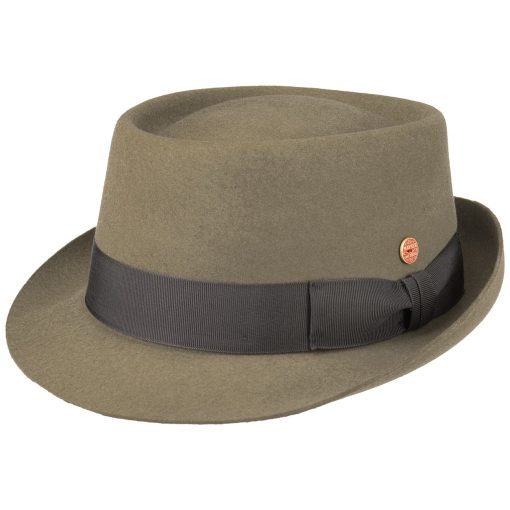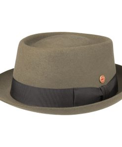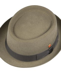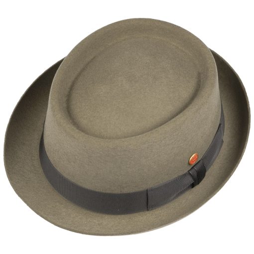 Dieser Pork Pie Hut, aus weichem Wollfilz gefertigt, besticht durch seine einheitliche Farbgebung und sorgfältige Handarbeit. Ein Futterband gewährleistet optimalen Komfort beim Tragen. Die elegant geformte Krempe und die gleichmäßig eingedellte Krone unterstreichen das stilvolle Design des Filzhuts. Eine farblich abgestimmte Ripsbandgarnitur mit Schleife rundet den Look gekonnt ab. Der Hersteller hat sich sowohl auf einem seitlichen Pin als auch in der Krone mit einem Qualitätsversprechen verankert – handgefertigt in der EU.