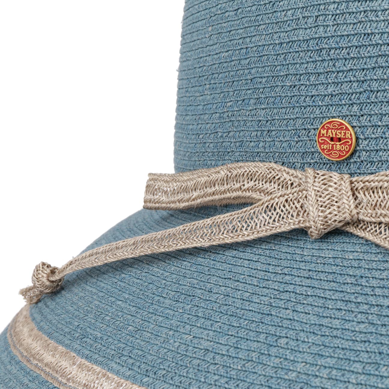 Besonders schön gemacht. Der formvollendete Sonnenhut von Mayser hat sich mit einer sommerleichten Strohmischung sowie einem Mix aus Hanf und Baumwolle ausgestattet, was ihm ein leichtes Tragegefühl beschert. Auf der abgesenkten Schatten spendenden Krempe schmückt sich der knautschbare melierte Strohhut mit einem farbig abgesetzten Streifen und mit einer filigranen Schleife hat er sich für unterwegs besonders schön gemacht. Mit Stretchfutterband, UV-Schutz 80+, in der EU gefertigt.