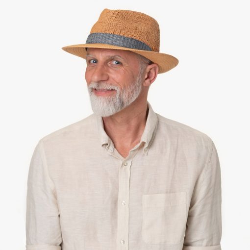 Der elegante Panamahut besticht durch sein zeitloses Design und seine sommerliche Ausstrahlung. Seine hohe Qualität wird unterstrichen durch die verschiedenen Flecht- und Webmuster, welche das Garniturband gekonnt in Szene setzt. Die stilvolle Dynamik des Designs nimmt nichts von der Eleganz dieses Trilbyhutes weg. Hergestellt aus reinem Panamastroh ist er angenehm leicht zu tragen – perfekt für warme Sommertage. Ein Produkt europäischer Handwerkskunst.