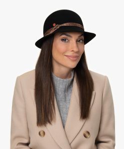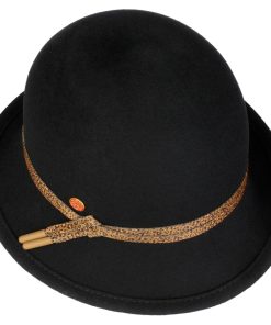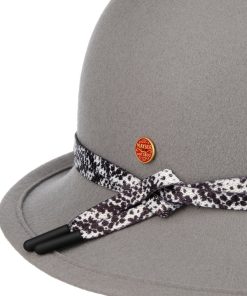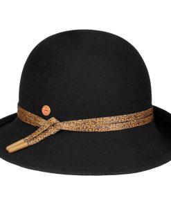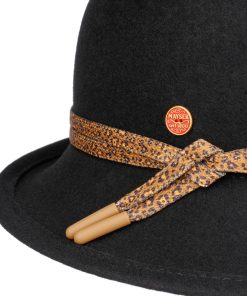 Mit seiner eleganten und modischen Ausstrahlung, ist dieser Glockenhut aus Wollfilz ein feminines Highlight. Seine runde Krone kombiniert mit einer asymmetrisch geformten Krempe verleiht jedem Outfit das gewisse Etwas. Das einfarbige Design wird durch ein gemustertes Garniturband abgerundet, welches doppelt um die Krone geschlungen und lässig zusammengebunden wurde. Für den perfekten Halt sorgt zudem das integrierte Stretchfutterband. Ein in der EU hergestelltes Produkt von hoher Qualität.