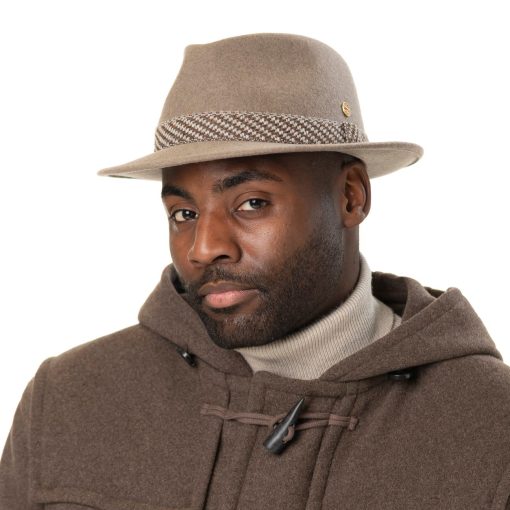 Genießen Sie optimalen Schutz, ob daheim oder auf Reisen. Der Trilby-Hut besteht aus 100% wohltuender Wolle und bietet dank seiner Wasserresistenz auch bei Regenwetter einen zuverlässigen Begleiter. Durch seine kompakte Form lässt er sich mühelos im Gepäck verstauen – perfekt für unterwegs! Sein ansprechendes Garniturband macht ihn zudem zum echten Hingucker und passt hervorragend zu unterschiedlichsten Kleidungsstilen. Ein Accessoire mit Charme und Funktionalität zugleich.