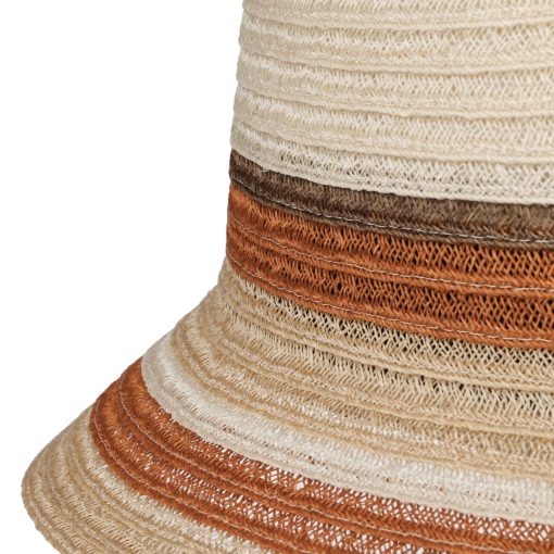Ob es in die Ferne zieht oder ein Ausflug vor der Haustür geplant ist, dieser mehrfarbige Glockenhut ist stets ein stilvoller Begleiter. Hergestellt aus einer Borte, die überwiegend aus Hanf und zusätzlich Baumwolle besteht, zeigt er sich mit einem attraktiven Streifenmuster in warmen Erdtönen und einem hellen Kontraststreifen. Seine knautschbare Eigenschaft macht ihn zum perfekten Reiseaccessoire – leicht zu verstauen ohne seine Form zu verlieren. Ein Stretchfutterband sorgt für angenehmen Tragekomfort. Qualität made in EU.
