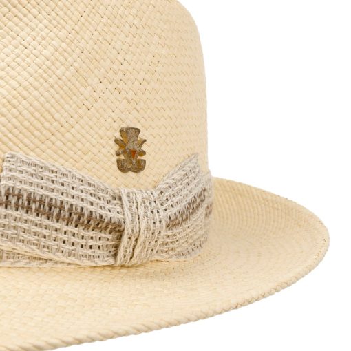Mit seiner eleganten Form und funktionalen Eigenschaften beweist dieser Bogarthut, dass Stil und Praktikabilität Hand in Hand gehen können. Hergestellt aus reinem Panamastroh ist er nicht nur ein Blickfang, sondern bietet auch einen hohen UV-Schutz von 80 nach dem UV-Standard 801 (Hohenstein). Erstaunlicherweise trotzt der Hut sogar Regenschauern dank seiner Wasserabweisung. Somit steht einem stylischen Auftritt bei jedem Wetter nichts im Wege. Ein treuer Begleiter, gefertigt in der EU.
