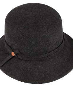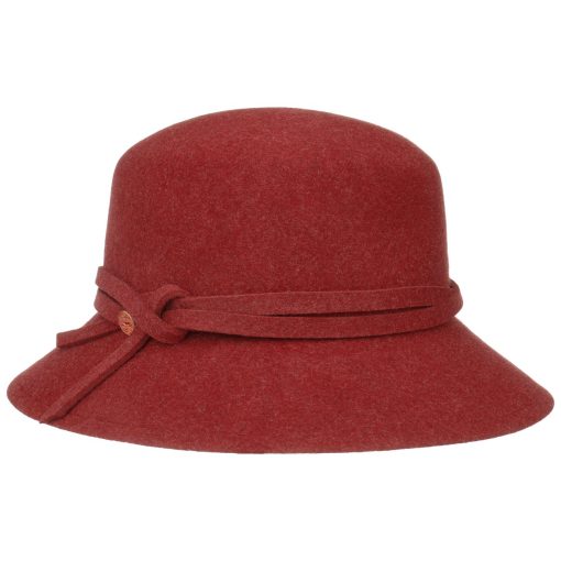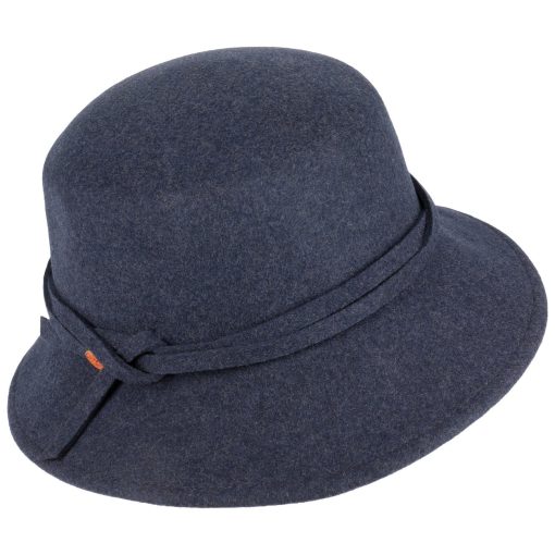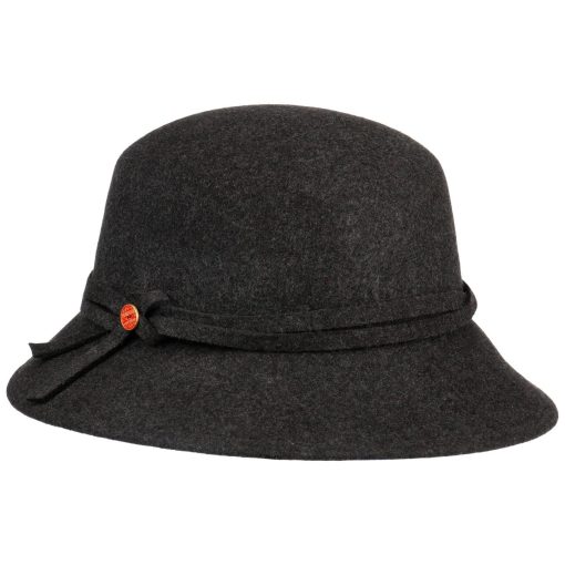 Ein handgefertigter Wollfilzhut, der durch seine feminine Glockenform besticht. Ob Regen oder Sonnenschein, er behält stets seinen Charme und schützt zuverlässig vor den Elementen. Der Hut lässt sich problemlos knautschen und bietet UV-Schutz sowie wasserabweisende Eigenschaften. Seine einfarbige Gestaltung mit einer elegant zur Schleife gelegten Garnitur macht ihn zum idealen Begleiter für Outdoor-Aktivitäten, Feierlichkeiten im Freien und Reisen bei jedem Wetter. Ein Futterband sorgt für zusätzlichen Komfort.