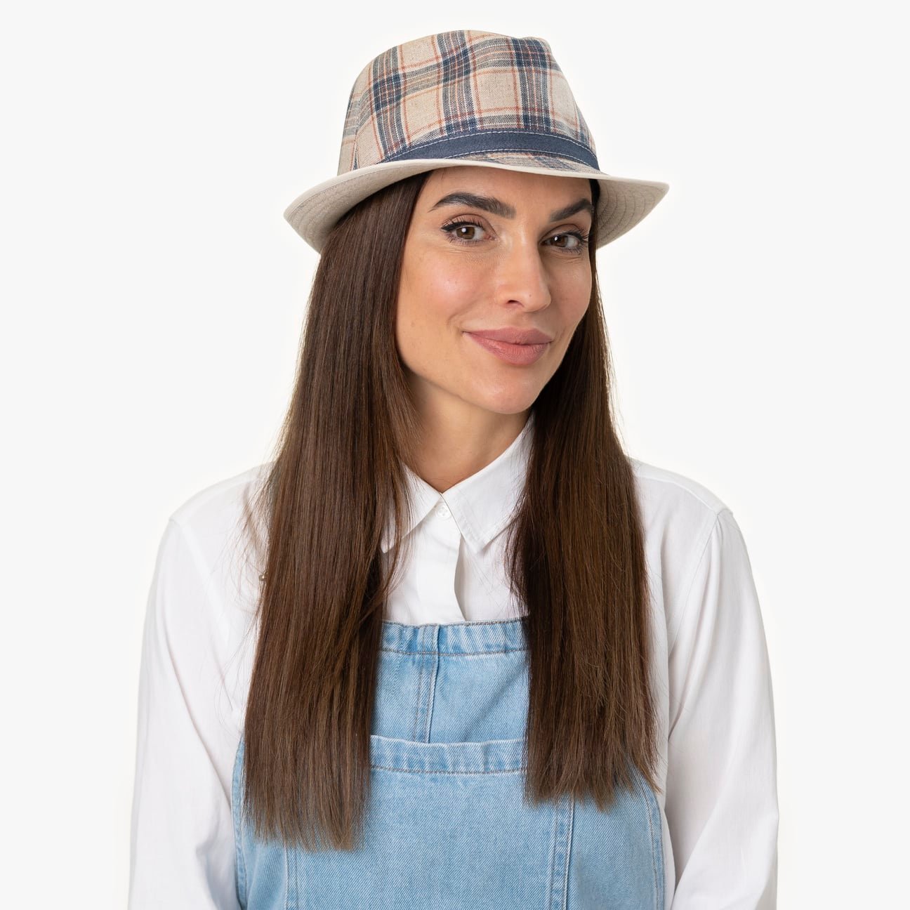 Der modische Trilby besticht durch seine Eleganz, die aus der Kombination von feinster Seide, Leinen und Baumwolle resultiert. Er ist nicht nur stilvoll, sondern auch angenehm zu tragen dank des weichen und hautverträglichen Futters. Das mehrfarbige Karomuster sowie das Stoffgarniturband verleihen ihm zusätzlich eine einzigartige Note. Zudem unterstreicht die handgefertigte Qualität aus der EU sein exklusives Design. Ein Sonnenhut mit Charakter für den trendbewussten Hutliebhaber.