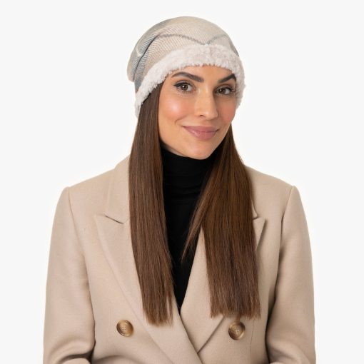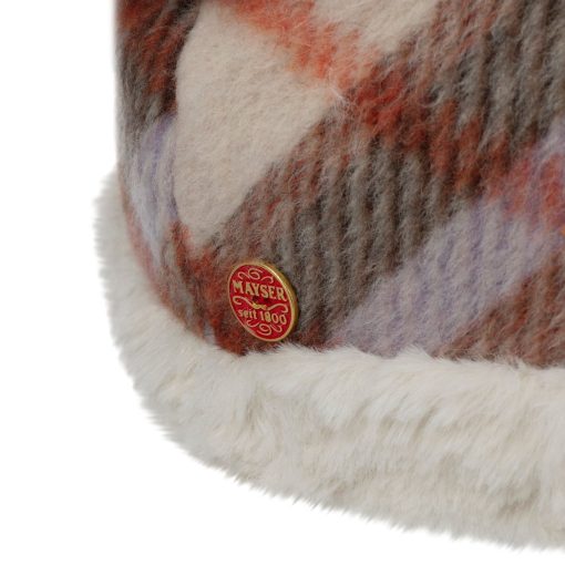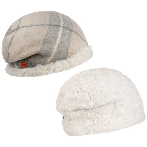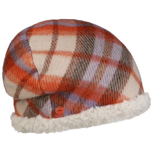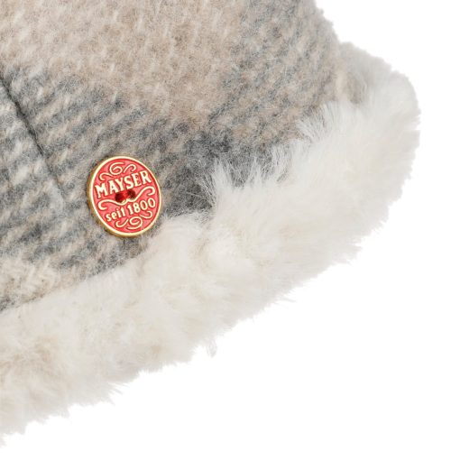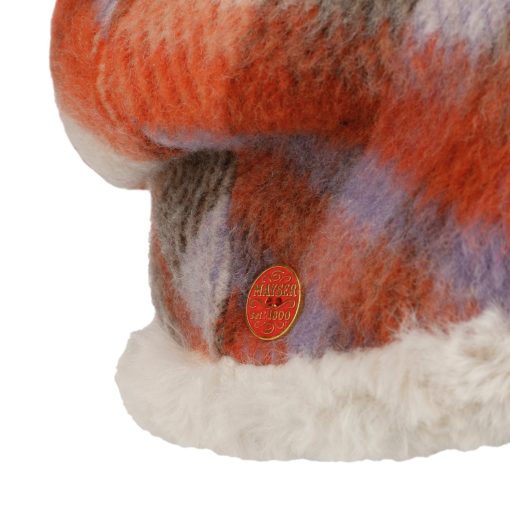 Ein vielseitiges Accessoire für die kalte Jahreszeit ist diese wendbare Mütze. Sie besteht aus einem Mix natürlicher Materialien, darunter auch Wolle. Mit zwei unterschiedlichen Seiten bietet sie verschiedene Stylingoptionen – eine Seite zeigt ein auffälliges Karomuster und wird von einem kuscheligen Pelzrand in Unifarbe ergänzt, der einen winterlichen Charme verleiht und den Tragekomfort erhöht. Die sorgfältige Handarbeit sowie der schmückende Label-Knopf unterstreichen das hochwertige Design dieses EU-gefertigten Winteraccessoires.Produktinformation|